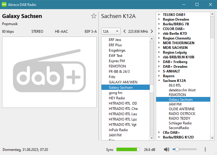 Galaxy Sachsen ist auf Sendung, aber im Moment bekommt man noch Ohrenkrebs. Da muss am Signal noch nachgebessert werden.