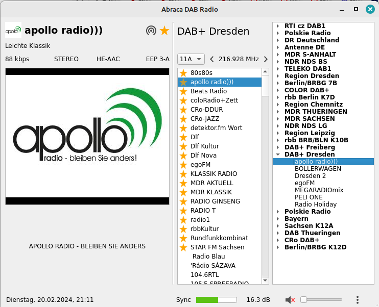 Audio-Service 0x1AC5, Label: 'apollo radio)))', ShortLabel: 'apollo', PTY: Light Classical (dynamic), AnnouncementSupport: No, NumComponents: 1 (Audio: 1, Data: 0)