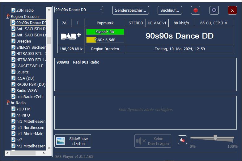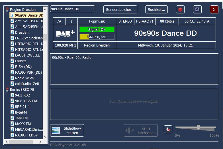 Ensemble 0x100D, Label: 'DAB+ Dresden', ShortLabel: 'Dresden', LTO: +120 min, ECC: 0xE0, NumServices: 9