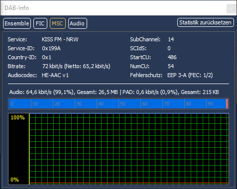 Also nach meiner Information wird die reine Audiobitrate nur durch die Slideshow beeinträchtigt, der Text hat damit nichts zu tun. Es ist völlig egal ob ich nun DLS sende oder nicht, die Audiobitrate bleibt eigentlich die selbe.