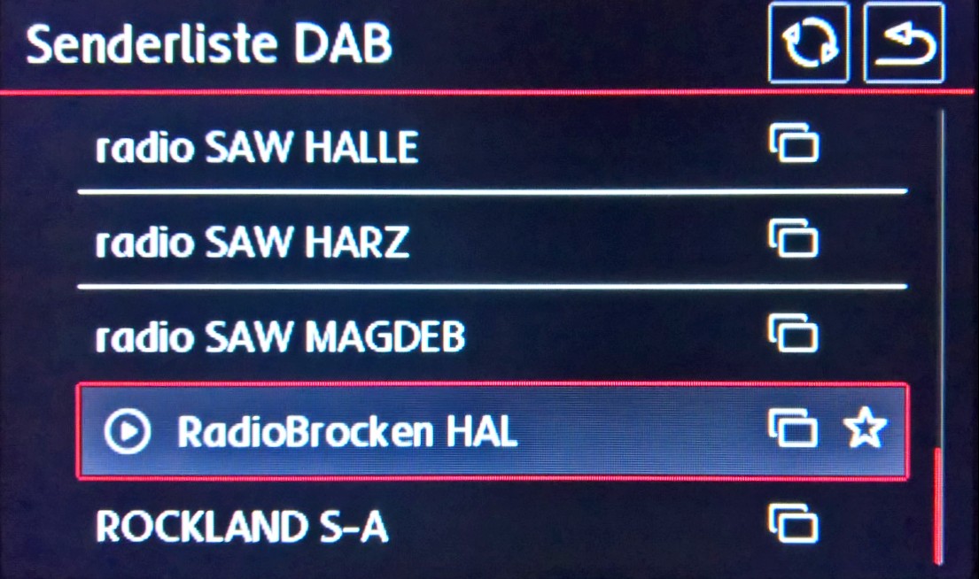 Beim langen Namen "RadioBrocken HAL" ist alles ausgereizt. Mein Autoradio sortiert ihn etwas weiter unten ein. Je nach Radio kann das aufgrund der alphabetischen Anordnung passieren.
