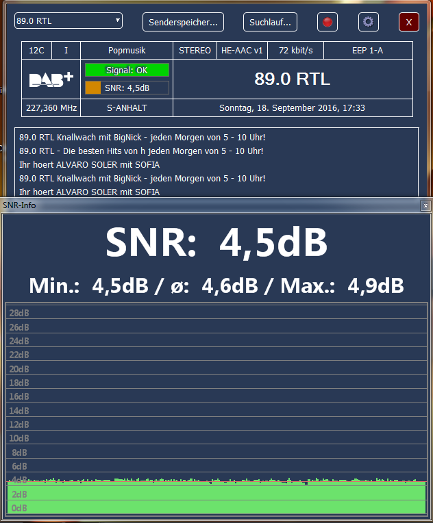 Ganz ehrlich, manche Titel laufen im Schlagerparadies und auf Bayern Plus gleichzeitig. Schlagerparadies klingt für mich klarer aber auch etwas angekratzter. Bayern Plus ehr schon wieder zu dumpf. Zwischen beiden die Mitte wäre gut oder eben dem einen mehr Datenrate geben. Aber das Gegenteil passiert erstmal. Trotzdem alles besser als UKW oder Kassette. Beim Schlagerparadies hört man auch oft wenn die Titel von Schallplatte digitalisiert worden. Dazu noch etwas AAC und mancher UKW oder AM Kenner fällt um. Die meisten kennen verrauschtes UKW und sind froh wenn das ein Ende hat.