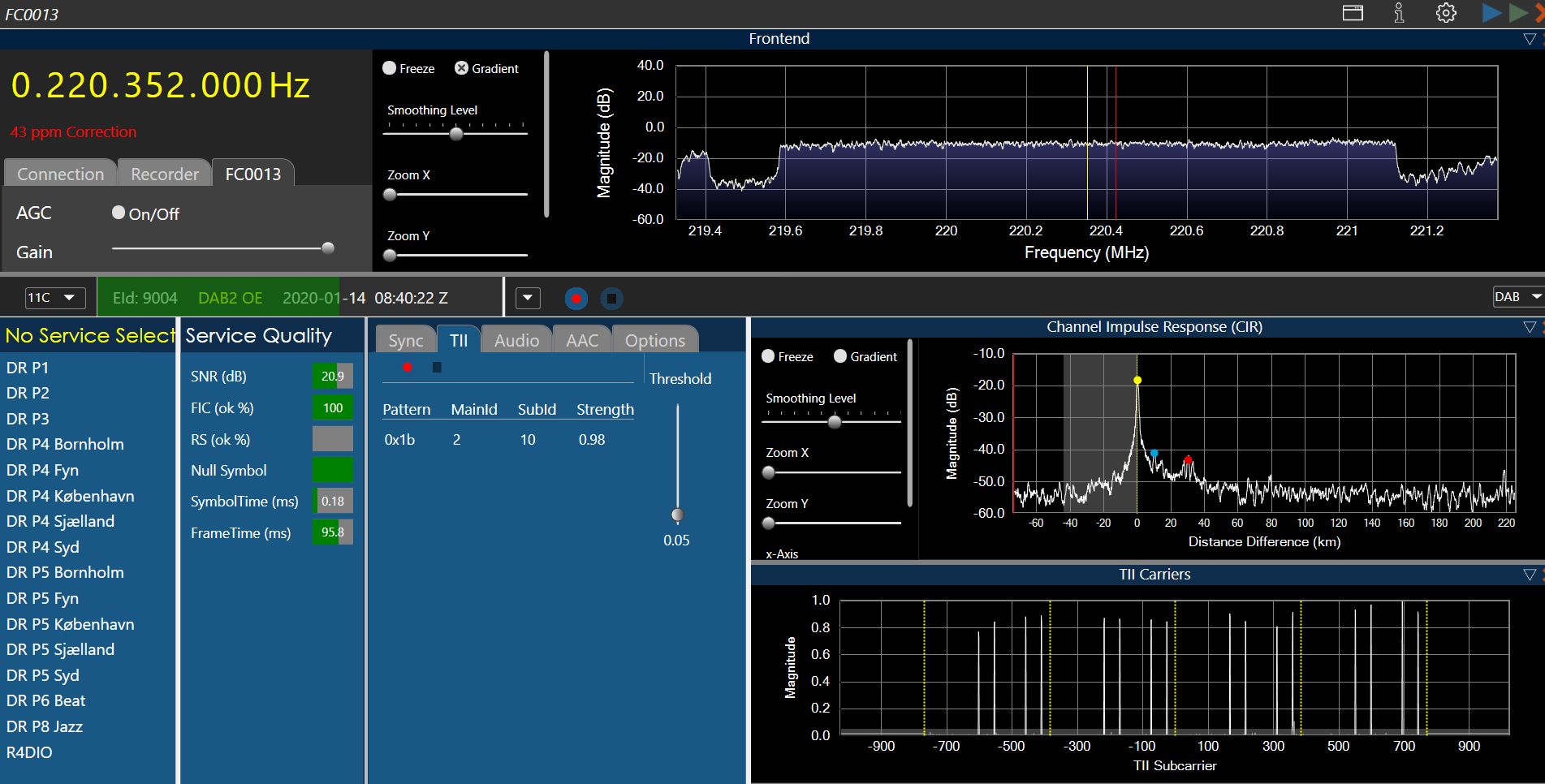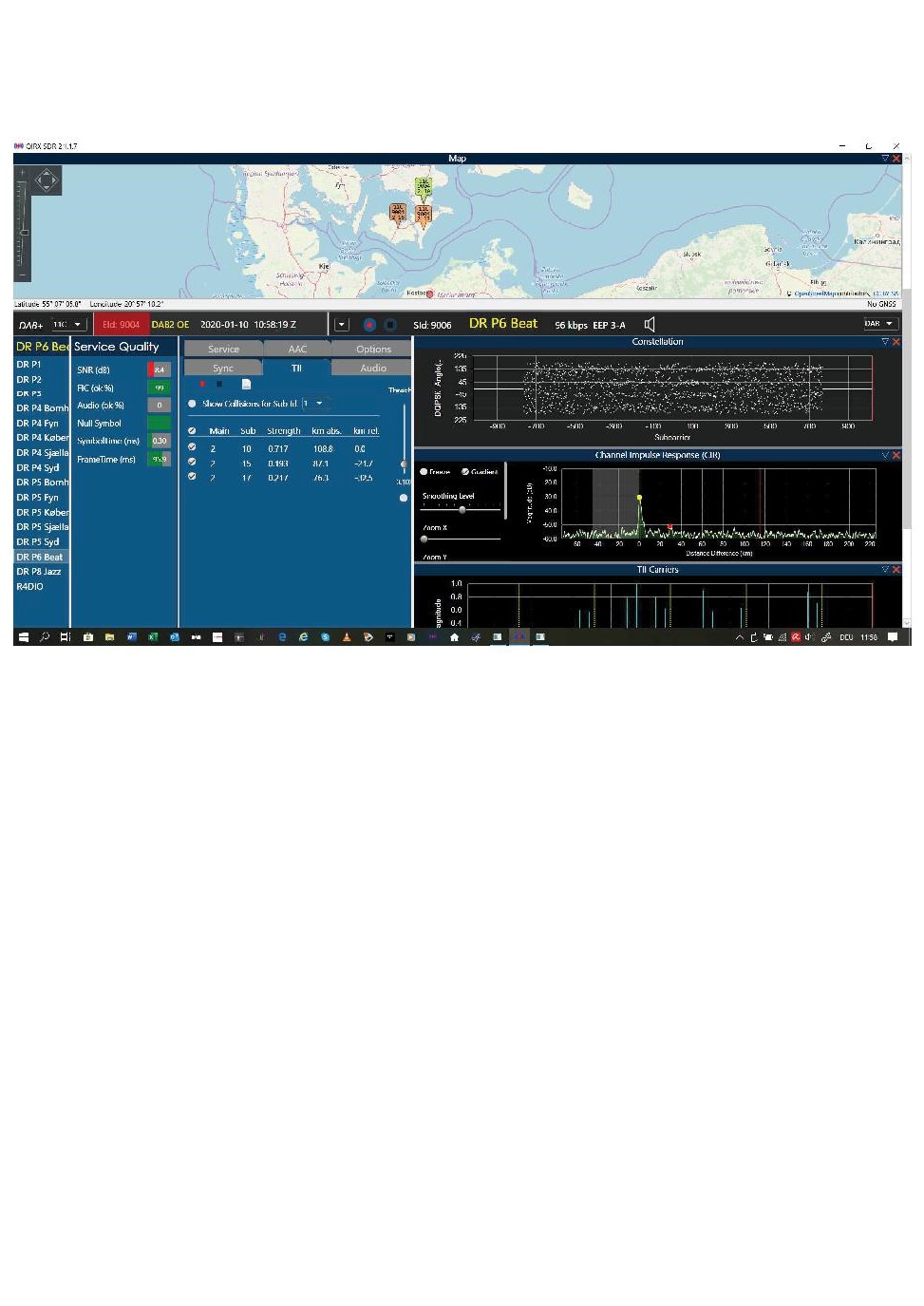 Ensemble 0x9004, Label: 'DAB2 OE', ShortLabel: 'DAB2 OE', LTO: +60 min, ECC: 0xE1, NumServices: 17 Audio-Service 0x9001, Label: 'DR P1', ShortLabel: 'DR P1', PTY: Varied (dynamic), AnnouncementSupport: No, NumComponents: 1 (Audio: 1, Data: 0) AudioComponent, SCIdS: 0, Label: '', ShortLabel: '', ASCTy: 0x3F (AAC), SubChId: 4, StartCU: 138, NumCU: 54, ErrorProt: EEP 3-A (FEC: 1/2), Datarate: 72 kbit/s, NumUserApps: 0 Audio-Service 0x9002, Label: 'DR P2', ShortLabel: 'DR P2', PTY: Serious Classical (dynamic), AnnouncementSupport: No, NumComponents: 1 (Audio: 1, Data: 0) AudioComponent, SCIdS: 0, Label: '', ShortLabel: '', ASCTy: 0x3F (AAC), SubChId: 5, StartCU: 192, NumCU: 96, ErrorProt: EEP 3-A (FEC: 1/2), Datarate: 128 kbit/s, NumUserApps: 0 Audio-Service 0x9003, Label: 'DR P3', ShortLabel: 'DR P3', PTY: Pop Music (dynamic), AnnouncementSupport: No, NumComponents: 1 (Audio: 1, Data: 0) AudioComponent, SCIdS: 0, Label: '', ShortLabel: '', ASCTy: 0x3F (AAC), SubChId: 3, StartCU: 72, NumCU: 66, ErrorProt: EEP 3-A (FEC: 1/2), Datarate: 88 kbit/s, NumUserApps: 0 Audio-Service 0x9005, Label: 'DR P5 København', ShortLabel: 'DR P5Kbh', PTY: Easy Listening Music (dynamic), AnnouncementSupport: No, NumComponents: 1 (Audio: 1, Data: 0) AudioComponent, SCIdS: 0, Label: '', ShortLabel: '', ASCTy: 0x3F (AAC), SubChId: 20, StartCU: 702, NumCU: 66, ErrorProt: EEP 3-A (FEC: 1/2), Datarate: 88 kbit/s, NumUserApps: 0 Audio-Service 0x9006, Label: 'DR P6 Beat', ShortLabel: 'DR P6 Be', PTY: Rock Music (dynamic), AnnouncementSupport: No, NumComponents: 1 (Audio: 1, Data: 0) AudioComponent, SCIdS: 0, Label: '', ShortLabel: '', ASCTy: 0x3F (AAC), SubChId: 6, StartCU: 288, NumCU: 72, ErrorProt: EEP 3-A (FEC: 1/2), Datarate: 96 kbit/s, NumUserApps: 0 Audio-Service 0x9008, Label: 'DR P8 Jazz', ShortLabel: 'DR P8 Ja', PTY: Jazz Music (dynamic), AnnouncementSupport: No, NumComponents: 1 (Audio: 1, Data: 0) AudioComponent, SCIdS: 0, Label: '', ShortLabel: '', ASCTy: 0x3F (AAC), SubChId: 2, StartCU: 0, NumCU: 72, ErrorProt: EEP 3-A (FEC: 1/2), Datarate: 96 kbit/s, NumUserApps: 0 Audio-Service 0x9204, Label: 'R4DIO', ShortLabel: 'R4DIO', PTY: Current Affairs (dynamic), AnnouncementSupport: No, NumComponents: 1 (Audio: 1, Data: 0) AudioComponent, SCIdS: 0, Label: '', ShortLabel: '', ASCTy: 0x3F (AAC), SubChId: 24, StartCU: 768, NumCU: 96, ErrorProt: EEP 3-A (FEC: 1/2), Datarate: 128 kbit/s, NumUserApps: 0 Audio-Service 0x9342, Label: 'DR P4 Syd', ShortLabel: 'DR P4Syd', PTY: Varied (dynamic), AnnouncementSupport: No, NumComponents: 1 (Audio: 1, Data: 0) AudioComponent, SCIdS: 0, Label: '', ShortLabel: '', ASCTy: 0x3F (AAC), SubChId: 9, StartCU: 360, NumCU: 66, ErrorProt: EEP 3-A (FEC: 1/2), Datarate: 88 kbit/s, NumUserApps: 0 Audio-Service 0x9345, Label: 'DR P5 Syd', ShortLabel: 'DR P5Syd', PTY: Easy Listening Music (dynamic), AnnouncementSupport: No, NumComponents: 1 (Audio: 1, Data: 0) AudioComponent, SCIdS: 0, Label: '', ShortLabel: '', ASCTy: 0x3F (AAC), SubChId: 20, StartCU: 702, NumCU: 66, ErrorProt: EEP 3-A (FEC: 1/2), Datarate: 88 kbit/s, NumUserApps: 0 Audio-Service 0x9362, Label: 'DR P4 Fyn', ShortLabel: 'DR P4Fyn', PTY: Varied (dynamic), AnnouncementSupport: No, NumComponents: 1 (Audio: 1, Data: 0) AudioComponent, SCIdS: 0, Label: '', ShortLabel: '', ASCTy: 0x3F (AAC), SubChId: 14, StartCU: 438, NumCU: 66, ErrorProt: EEP 3-A (FEC: 1/2), Datarate: 88 kbit/s, NumUserApps: 0 Audio-Service 0x9365, Label: 'DR P5 Fyn', ShortLabel: 'DR P5Fyn', PTY: Easy Listening Music (dynamic), AnnouncementSupport: No, NumComponents: 1 (Audio: 1, Data: 0) AudioComponent, SCIdS: 0, Label: '', ShortLabel: '', ASCTy: 0x3F (AAC), SubChId: 20, StartCU: 702, NumCU: 66, ErrorProt: EEP 3-A (FEC: 1/2), Datarate: 88 kbit/s, NumUserApps: 0 Audio-Service 0x9372, Label: 'DR P4 Sjælland', ShortLabel: 'DR P4Sjl', PTY: Varied (dynamic), AnnouncementSupport: No, NumComponents: 1 (Audio: 1, Data: 0) AudioComponent, SCIdS: 0, Label: '', ShortLabel: '', ASCTy: 0x3F (AAC), SubChId: 15, StartCU: 504, NumCU: 66, ErrorProt: EEP 3-A (FEC: 1/2), Datarate: 88 kbit/s, NumUserApps: 0 Audio-Service 0x9375, Label: 'DR P5 Sjælland', ShortLabel: 'DR P5Sjl', PTY: Easy Listening Music (dynamic), AnnouncementSupport: No, NumComponents: 1 (Audio: 1, Data: 0) AudioComponent, SCIdS: 0, Label: '', ShortLabel: '', ASCTy: 0x3F (AAC), SubChId: 20, StartCU: 702, NumCU: 66, ErrorProt: EEP 3-A (FEC: 1/2), Datarate: 88 kbit/s, NumUserApps: 0 Audio-Service 0x9382, Label: 'DR P4 København', ShortLabel: 'DR P4Kbh', PTY: Varied (dynamic), AnnouncementSupport: No, NumComponents: 1 (Audio: 1, Data: 0) AudioComponent, SCIdS: 0, Label: '', ShortLabel: '', ASCTy: 0x3F (AAC), SubChId: 16, StartCU: 570, NumCU: 66, ErrorProt: EEP 3-A (FEC: 1/2), Datarate: 88 kbit/s, NumUserApps: 0 Audio-Service 0x9392, Label: 'DR P4 Bornholm', ShortLabel: 'DR P4Bor', PTY: Varied (dynamic), AnnouncementSupport: No, NumComponents: 1 (Audio: 1, Data: 0) AudioComponent, SCIdS: 0, Label: '', ShortLabel: '', ASCTy: 0x3F (AAC), SubChId: 17, StartCU: 636, NumCU: 66, ErrorProt: EEP 3-A (FEC: 1/2), Datarate: 88 kbit/s, NumUserApps: 0 Audio-Service 0x9395, Label: 'DR P5 Bornholm', ShortLabel: 'DR P5Bor', PTY: Easy Listening Music (dynamic), AnnouncementSupport: No, NumComponents: 1 (Audio: 1, Data: 0) AudioComponent, SCIdS: 0, Label: '', ShortLabel: '', ASCTy: 0x3F (AAC), SubChId: 20, StartCU: 702, NumCU: 66, ErrorProt: EEP 3-A (FEC: 1/2), Datarate: 88 kbit/s, NumUserApps: 0 Data-Service 0xE1900001, Label: 'DR Logoer', ShortLabel: 'DR Logo', PTY: -, AnnouncementSupport: No, NumComponents: 1 (Audio: 0, Data: 1) DataComponent (MSC packet data), SCIdS: 0, SCId: 0, Label: '', ShortLabel: '', DSCTy: 0x3C (MOT), SubChId: 10, StartCU: 426, NumCU: 12, ErrorProt: EEP 3-A (FEC: 1/2), Datarate: 16 kbit/s, PacketAddr: 1, NumUserApps: 1 User App 1 / 1, Label: '', ShortLabel: '', UaType: 0x7 (EPG), DataLen: 2 [0102]
