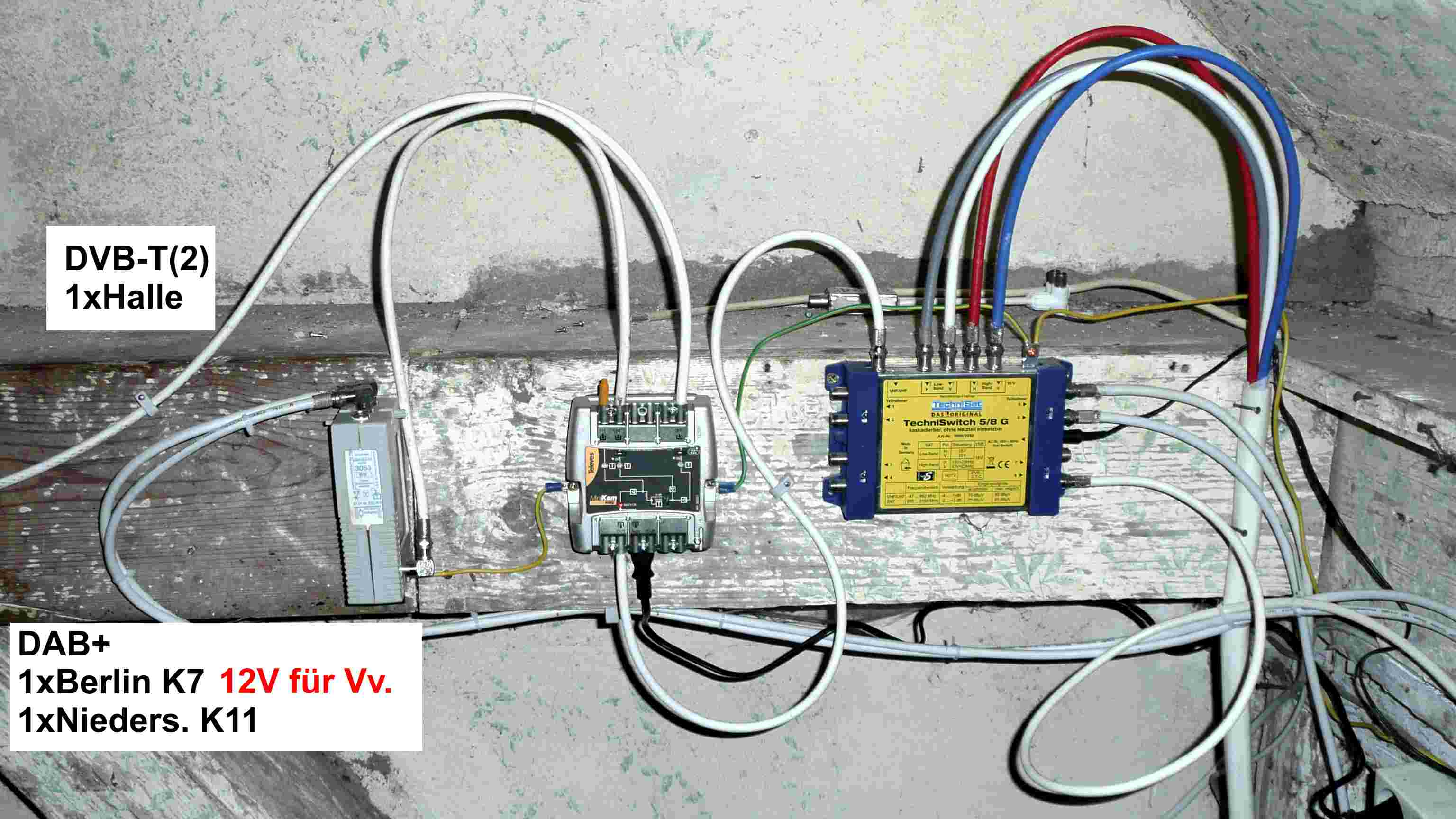 Zusätzlich zum DAB-Empfang habe ich nun auch auf DVB-T(2) erweitert. Da genügt aber eine Antenne unter dem Dach.