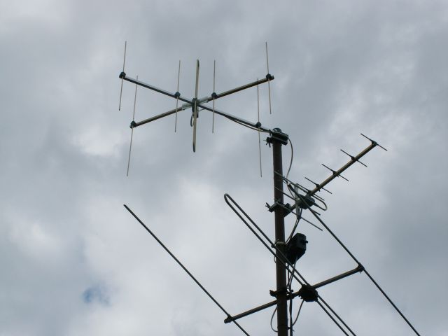 Hallo und herzlich willkommen. Ja das ist tatsächlich eine interessante Konstruktion. Habe ich so in der Art noch nicht gesehen. Es ist schwer einzuschätzen in wieweit sich die Antenneneigenschaften, also Gewinn,VR Verhältnis und Fusspunktwiderstand, gegen eine Einzelantenne verändern. Sehr interessant wäre ein Vergleich mit einem Einzeldipol an dieser exponierten Stelle ganz oben am Mast. Wichtig ist aber das Du zufrieden mit dem Empfang bist und alles stabil funktioniert.