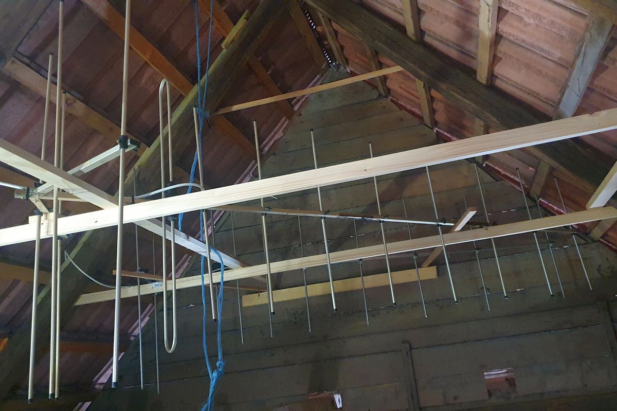Da ich mit meiner Drehbaren, 2er Gruppe 3H-VHF-16-LOG, keinen Erfolg hatte, habe ich eine 13 Element Yagi nach Chemnitz ausgerichtet. In der Empfangsrichtung steht leider in 16 km Entfernung der Sender Weißenfels Pettstädt, der auf Kanal 5C mit 10 kW sendet.