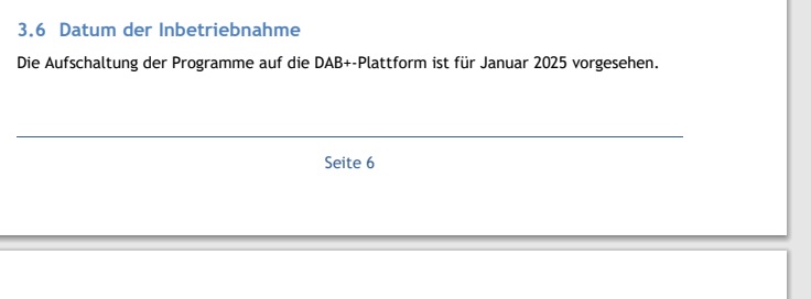 nächste Woche startet die NLM ein Vergabeverfahren für die ZF diverser NKL-Stationen für die Dauer von mind. 4 J.: Zitat: Der Auftragsgegenstand besteht aus einem Dienstleistungsvertrag für die Heranführung der Programme von acht Bürgerradios an das DABplus-Headend der Media Broadcast inklusive der Anschaffung von Geräten zur Sicherstellung eines nachhaltigen Betriebs z. B. für die Signalübernahme bei den Bürgerradios sowie der technischen Einrichtung (Konfiguration) der Geräte. Zitat: Die Programme der Bürgerradios müssen an das zentralen Headend der DAB+-Plattform an folgende Adresse herangeführt werden: DAB Headend Usingen, Erdfunkstelle 0, Am Wolfsgarten 1, 61250 Usingen. https://www.nlm.de/aktuell/ausschreibun ... n-rundfunk in den im Zip-Ordner enthaltenen Dateien findet sich das Startdatum Zitat: Ausführung der Leistungen: 1. Quartal 2025 Zitat: Die Aufschaltung der Programme auf die DAB+-Plattform ist für Januar 2025 vorgesehen. Dateianhang: deadline ist der 21. Oktober 12 Uhr Mittags. der Auftrag soll Mitte Dezember erteilt werden, Lieferung/Install. und Start soll Anfang 2025 erfolgen weiter heißt es dort: Zitat: die Niedersächsische Landesmedienanstalt (NLM) beabsichtigt, die Programme von derzeit acht Niedersächsischen Bürgerradios über die Niedersächsische, von Media Broadcast betriebene DAB+-Plattform für privaten Rundfunk zu verbreiten. Dafür besteht die Notwendigkeit, die Programme von den Bürgerradios abzuholen und an den zentralen Einspeisepunkt der Plattform (Headend) heranzuführen bei den acht Programmen handelt es sich um die unter Punkt 3.1 genannten Anbieter, ich habe den Mux ergänzt: (1) Radio Ostfriesland ---> 11A NORDSEE, wären dann 13 von 16 mögl. Progr. (2) Oldenburg eins ---> 10B OLDENBRG, der Mux wäre damit voll ausgelastet! (3) Ems-Vechte-Welle ---> 10C EMSLAND, wären dann 14 von 16 mög. Progr. wobei Lingen nicht erreicht wird (4) Radio ZuSa ---> 8B LUENEBRG, wären dann 11 von 16 mögl. Progr. wobei UE nicht abgedeckt ist (5) OS-Radio ---> 8B OSNABRCK, wären dann 12 von 16 mögl. Progr. (6) Radio Okerwelle ---> 11B BRAUNSCGW, der Mux wäre damit voll ausgelastet! (7) Radio Tonkuhle ---> 7A HANNOVER, der Mux wäre damit voll ausgelastet! (8) Stadtradio Göttingen ---> 7D GOETTNGN, wären dann 12 von 16 mögl. Progr. Hannover hat derzeit noch kein neues NKL-Bürgerradio. ferner die technischen Parameter: Zitat: In den Studios der Bürgerradios sind Signalprozessoren zur Aufbereitung der Signale für die UKW-Verbreitung in Betrieb. Soweit diese Geräte gleichzeitig für die DAB+-Verbreitung eingesetzt werden können, sind sie entsprechend zu konfigurieren. [...] Die Konfiguration der Signalprozessoren ist ebenso Teil des Auftragsgegenstands wie die zur Bestandssicherung notwendigen technischen Erweiterungen. Zitat: Die Programmheranführung ist so auszulegen, dass die technische Qualität der an den Signalquellen übergebenen Audiosignale auf der Heranführungsstrecke nicht verringert wird. am Rande noch interessant ist der Verweis auf die Einschaltquote dieser NKL-Stationen, die in der MA bekanntlich nicht ausgewiesen werden: Zitat: Innerhalb von zwei Wochen (Weitester Hörerkreis) schalten 446.000 Personen in das Programm eines niedersächsischen Bürgerradios. Frage: was ist mit Radio Jade ?? und was ist mit Radio Aktiv Hameln (vorgesehen für 9C WESERBLND) ?? |