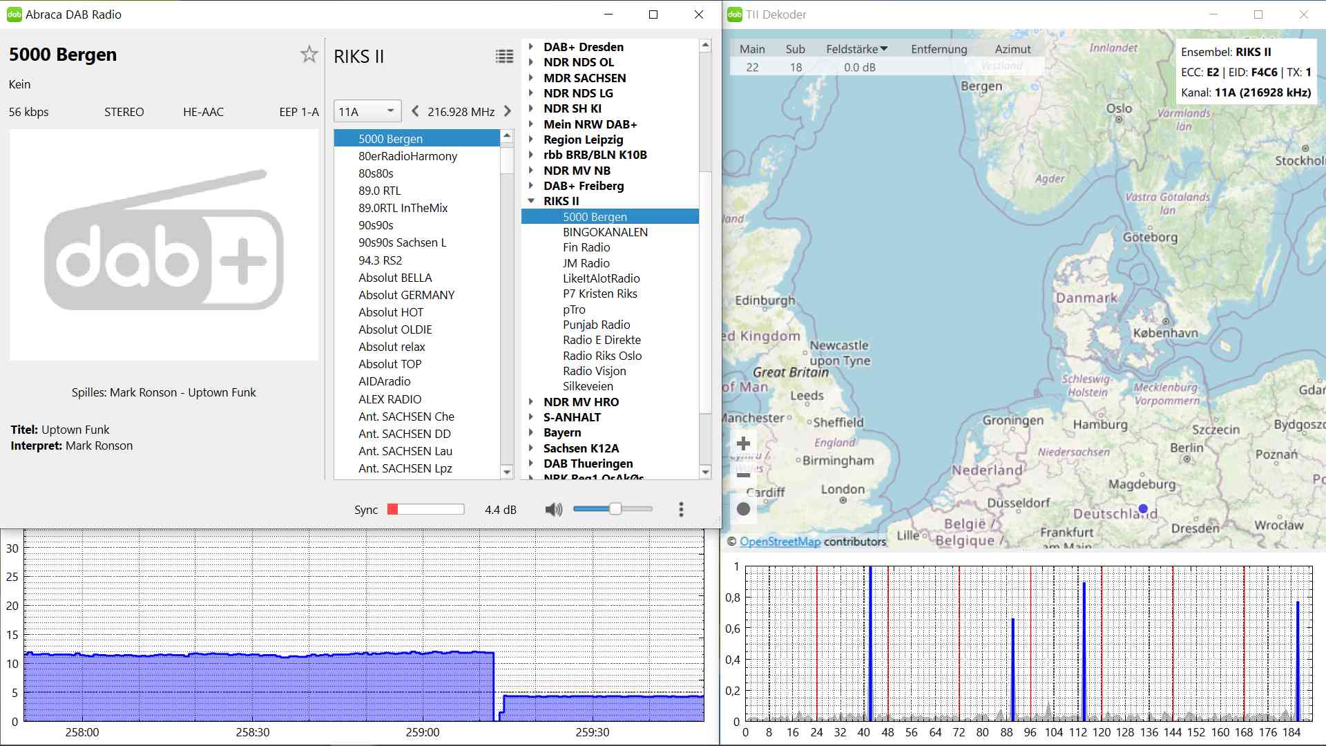 die Programme aus Norwegen und Schweden gehen hier drinnen so gut dass man problemlos dem Programm von Rix FM und NRJ Norge folgen kann fast ohne Aussetzer.