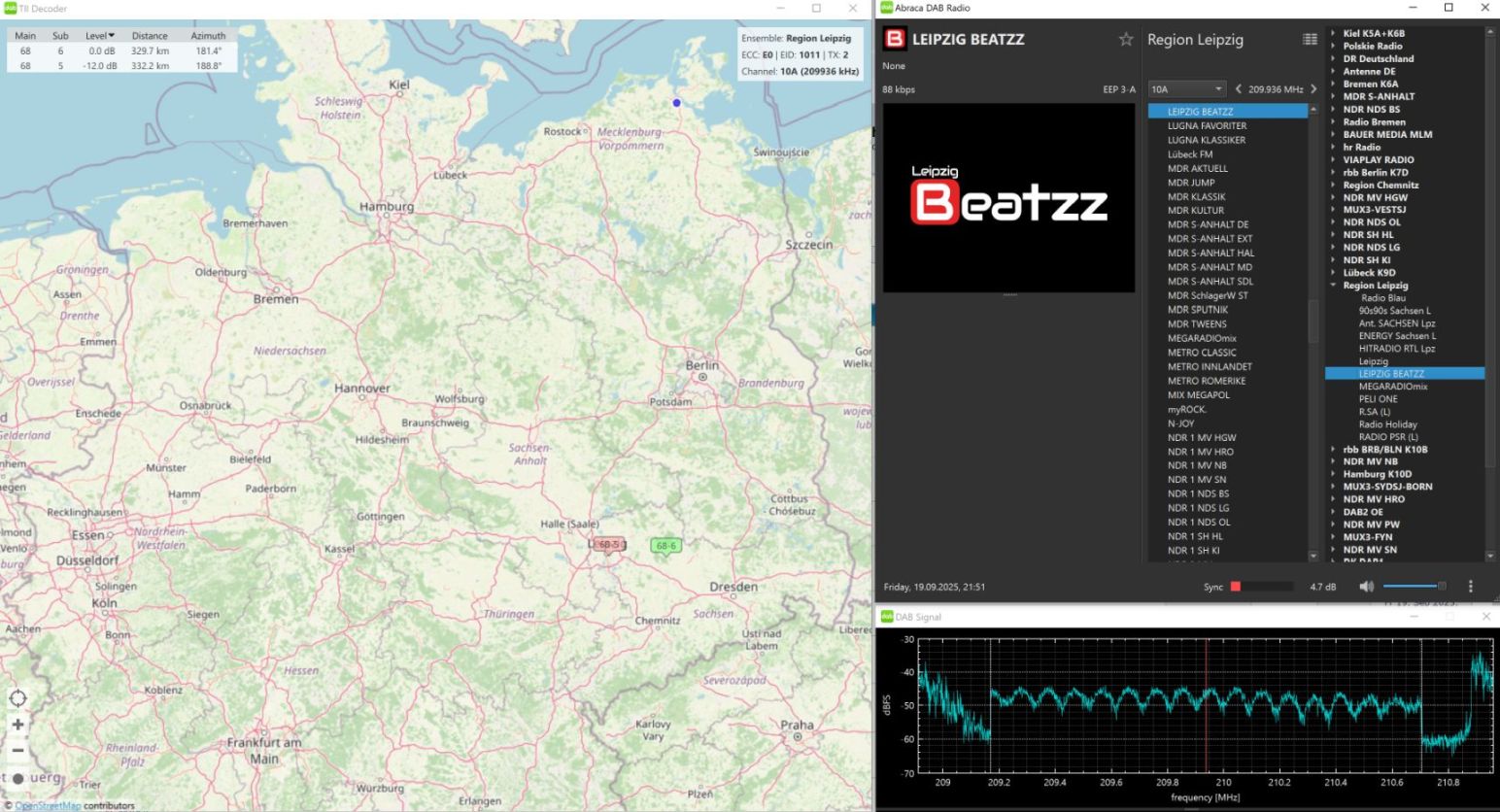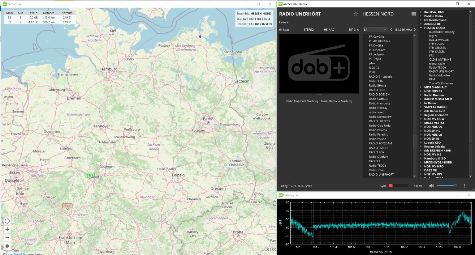 Auf 10D TELEKO DAB1 , TII 1007 mit ca. 380 km Entfernung.