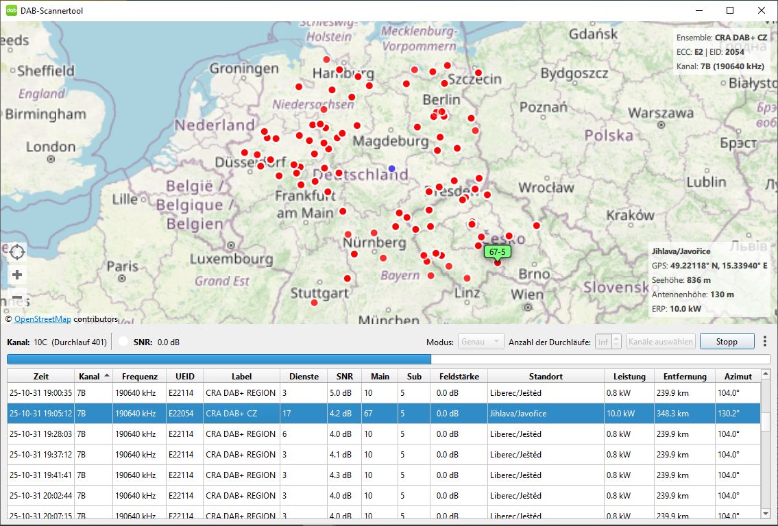 Hier die Empfangsliste von QIRX ... und dann die Standorte die Abra. eingelesen hat ...