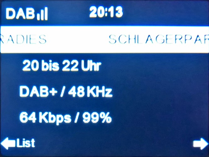 Ein paar Kleinigkeiten, also Software Macken habe ich dann doch gefunden. Sowas gibt es natürlich auch bei FS Radios. Ich habe auf DAB+ derzeit bis zu 137 unterschiedliche Programme und es werden mehr. Das ist eindeutig zuviel für das Gerät. Es stellt immer auf 100 zurück und blockiert das die Liste zum Scrollen. Ich muss jedes mal einen neuen Suchlauf starten wenn ich das Gerät neu einschalte oder auf ein anderen Mode (Internet, Bluetooth, UKW…) umschalte sonst fehlen mir die Programme über 100 und der Rest wird weggeschnitten. DAB AF gibt es nicht, ist auch nicht schlimm. Ich will bestimmen können ob ich Absolut Hot aus Leipzig oder aus Bayern hören kann. Das kann man bei FS Radios mit DAB AF nicht.