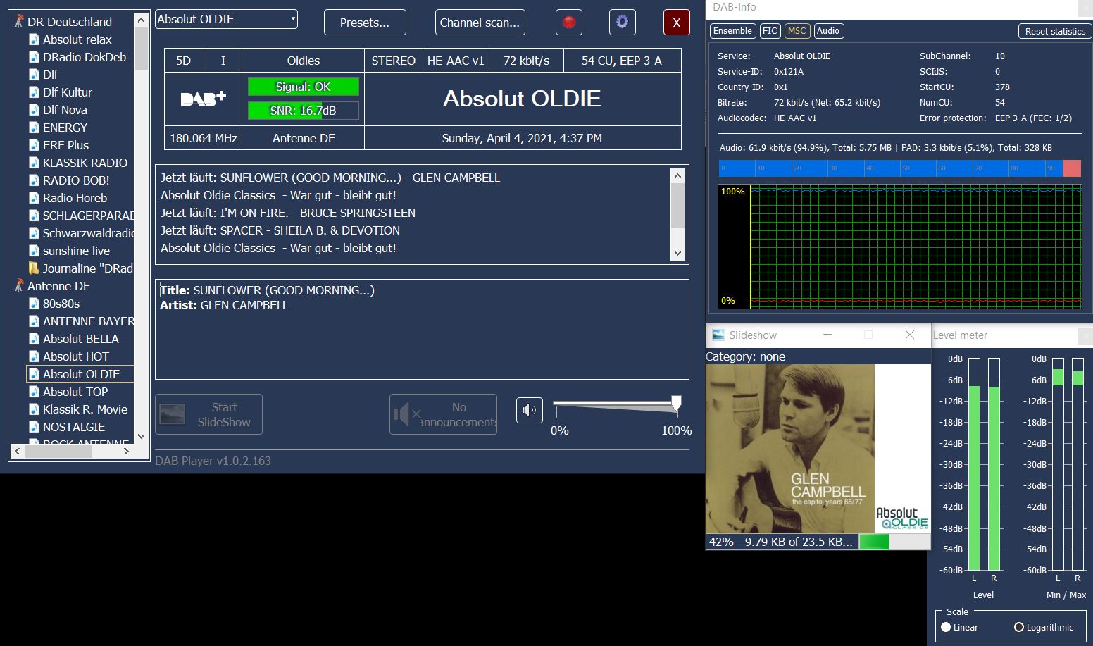 DAB-Info im MSC Feld die Statistic zum Verlauf der Audio und PAD Datenrate. Da das aber vor allem bei Top schon seit Dezember so ist, habe ich die Auswertung irgendwann abgebrochen. :-)