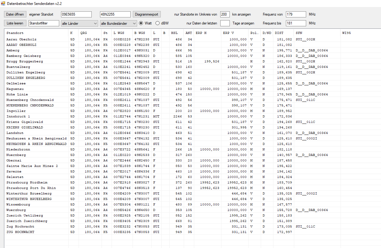 im Umkreis von 200 Km vom Sender Ulm Kuhberg :