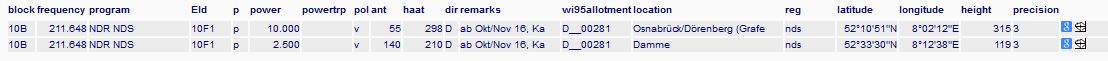 Mal noch was anderes...Für den Osnabrücker Standort Grafensundern war doch bisher der 10b koordiniert,offenbar wurde der Kanal im Februar geändert. Seitdem steht bei der Bundesnetzagentur der 10A drin.