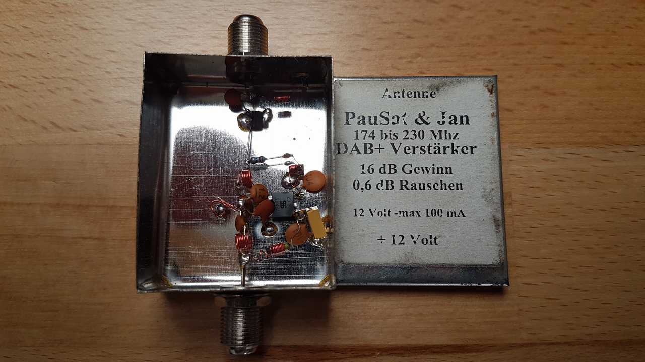 - Dann hat er leihweise einen PauSat DAB+ Verstärker mit 16dB mit 0,6dB Eigenrauschen mitgebracht der zum Einsatz kam.