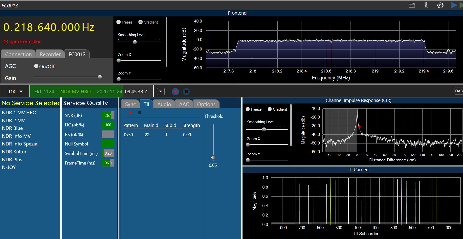 Das SNR in Qirks ist nach wie vor bei 26dB, muss ich nun aber den Gain zuruecknehemen, bis nichts mehr ueber die 0dB Linie geht.