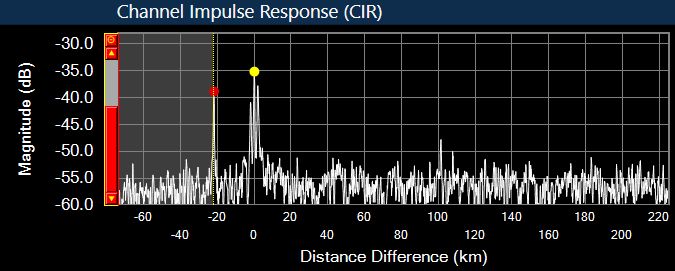 Durchschnittlich sieht es hier im CIR so aus, Schwerin (gelb) der staerkste mit ca. 6dB mehr als Grevesmuehlen (links daneben) und 3dB mehr als Marnitz (rechts daneben). Wismar (rot) meistens im Mittelfeld da 20km dichter. Der Unterschied zu Grevesmuehlen entspricht dem Unterschied der koordinierten ERP Leistung in meine Richtung, Marnitz ist hier schon deutlich aus der Empfangsrichtung der Antenne.