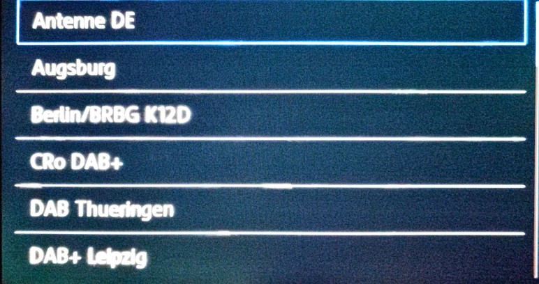 Weiter also mit dem Autoradio und der 37cm Stahlstabantenne. Sicher ist VW im DAB Bereich nicht für Leistung bekannt, es soll nur spielen was auch funktioniert und nicht aussetzt. Trotzdem wenn man schon ein volles Band hat wird gleich damit auch noch einmal ein Scan durchgeführt. Da bei UKW nichts mehr frei ist nur auf DAB, UKW ist bekannt. Der 11D Bayern geht oben heute gar nicht, dafür zahlreiche lokale Bayern Muxe. Ich habe zum Spaß also Arabella Bayern gewählt. 10B Oberfranken und 6C Oberpfalz sind durch rbb und Leipzig blockiert. Was macht also das Radio? 10C Nürnberg wurde gewählt und spielte auch ein paar Kilometer. Bei einem Aussetzer sprang es dann mal kurz zum 9C Augsburg, dann zum 8C Mittelfranken um dann wieder zum 10C Nürnberg zu wechseln. Später wurde statt dem erwarteten 11A Polen so noch 11A Ingolstadt geholt. Spannend wie faszinierend verrückt. So entstand dann mal ein kurzer Bandscan. Dabei ist zu beachten daß dieses Radio recht flott verschwindende Muxe wieder entfernt. Trotzdem ist die Ausbeute ohne Aufwand aber doch auf gut gewählter Höhe beachtlich wenn auch einige Muxe nicht hörbar wurden.