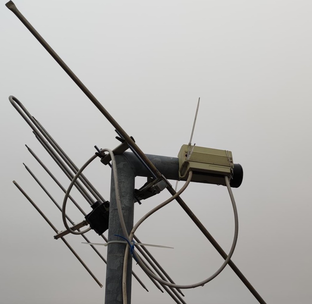 In der Box ist ein empfindlicher Vorverstaerker, 0,7dB mit 22dB Verstaerkung. Ist der einzige Verstaerker bis hin zum Radio / Laptop. Dazwischen sehr viel Kabel bis in den Keller und wieder hoch sowie 2 Sperrfilter, einmal 5C und einmal 8B. Weiterhin ein Daempfungssteller auf ca. 5dB eingestellt, eine Weiche um das Sat Signal mit auf das Kabel zu bekommen, Eine Antennendose um das Sat Signal wieder heraus zu bekommen und natuerlich das Umschaltrelais um auf die West und Nord Antennen zu schalten.
