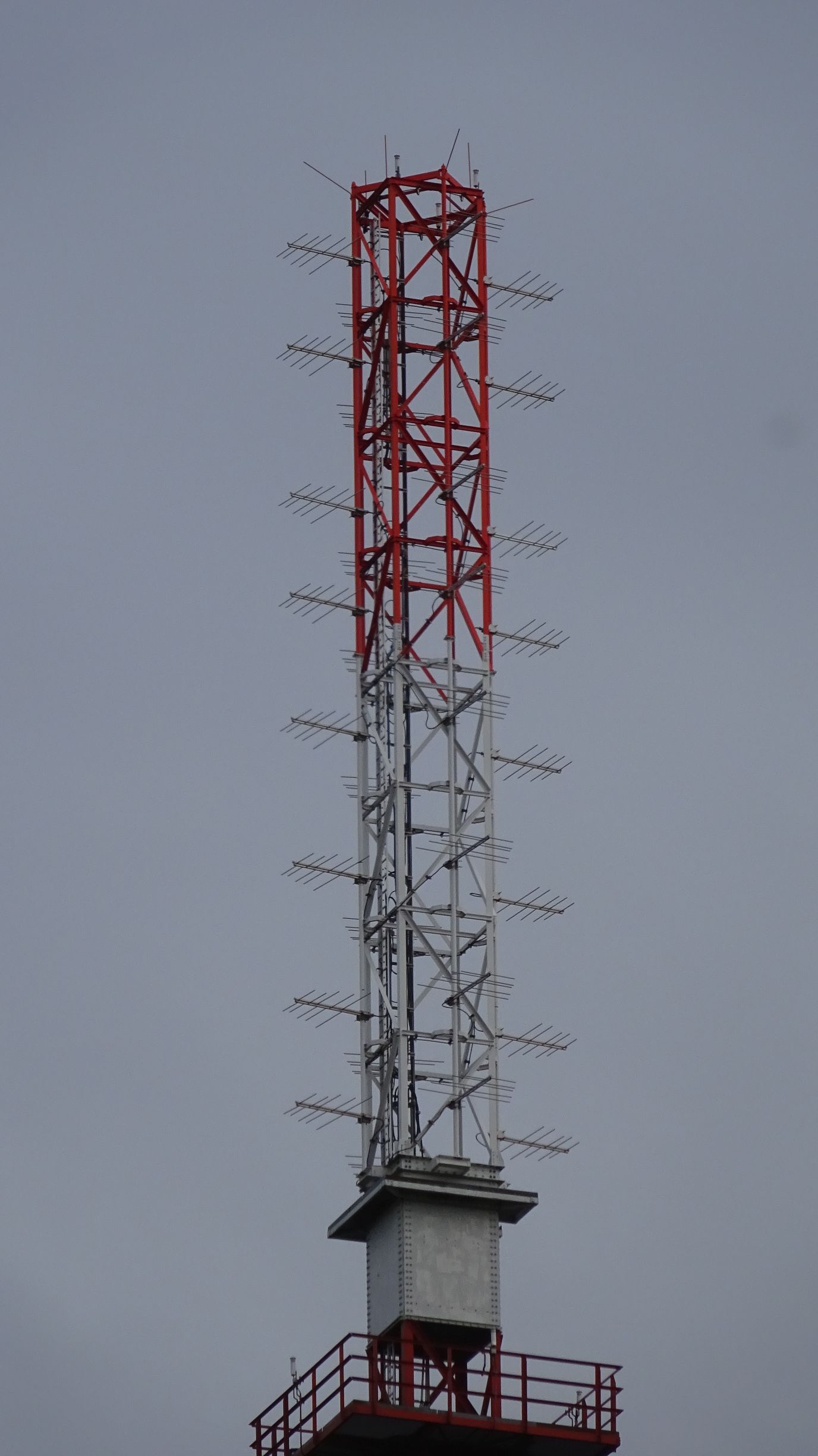 UKW kam frueher, bis auf Dlf Kultur aus dem GFK. Inzwischen, im Video kurz zu sehen, gibt es eine neue 4 Ebenen UKW Antenne unterhalb der obersten Verseilung und darunter eine 4 Ebenen DAB+ Antenne.