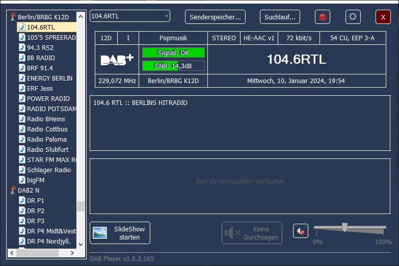User App 1 / 2, Label: '', ShortLabel: '', DSCTy: 0x3C (MOT), X-PAD type: 12, UaType: 0x2 (Slideshow), DataLen: 2 [0C3C]