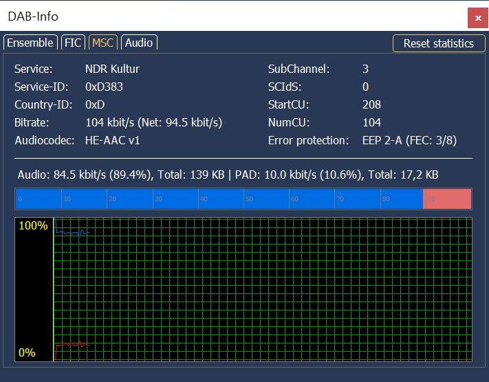 Wieviel Audiodatenrate hat denn mdr Klassik laut DABplayer, abzueglich PAD Daten fuer Slideshow und abzueglich des DAB AAC internen Fehlerschutzes?