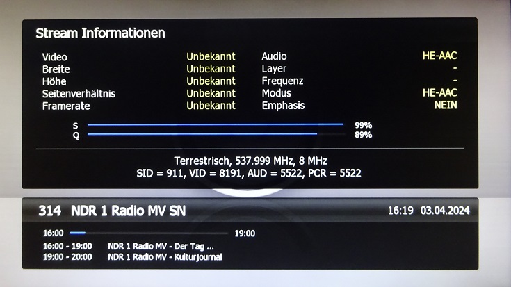 und ganz witzig, ich kann damit jetzt Radiohören ohne Radiogerät! weil der NDR nämlich auch einige seiner Radioprogramme über DVBT verbreitet.