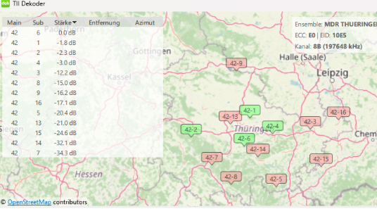 Im TII Fenster oben kannst du auch auf km klicken. Dann werden die Standorte nach Entfernung und nicht nach Empfangspegel sortiert.