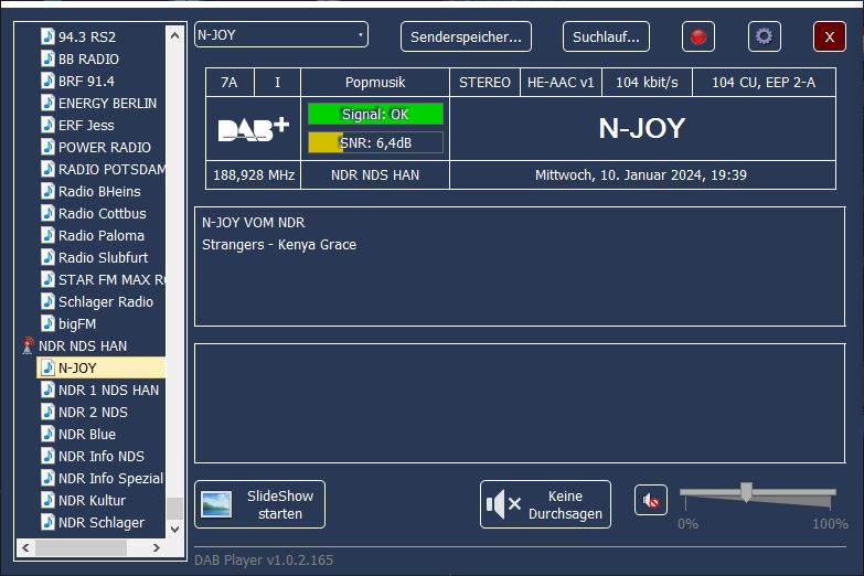 Ensemble 0x100D, Label: 'DAB+ Dresden', ShortLabel: 'Dresden', LTO: +120 min, ECC: 0xE0, NumServices: 9