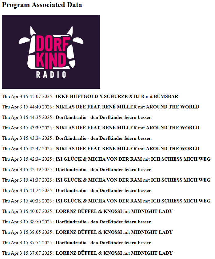 0xDDF8 Dorfkind [ Dorfkind ] ECC: 0xE0, Country: Germany, PTy: Pop Music (static), Announcements: No