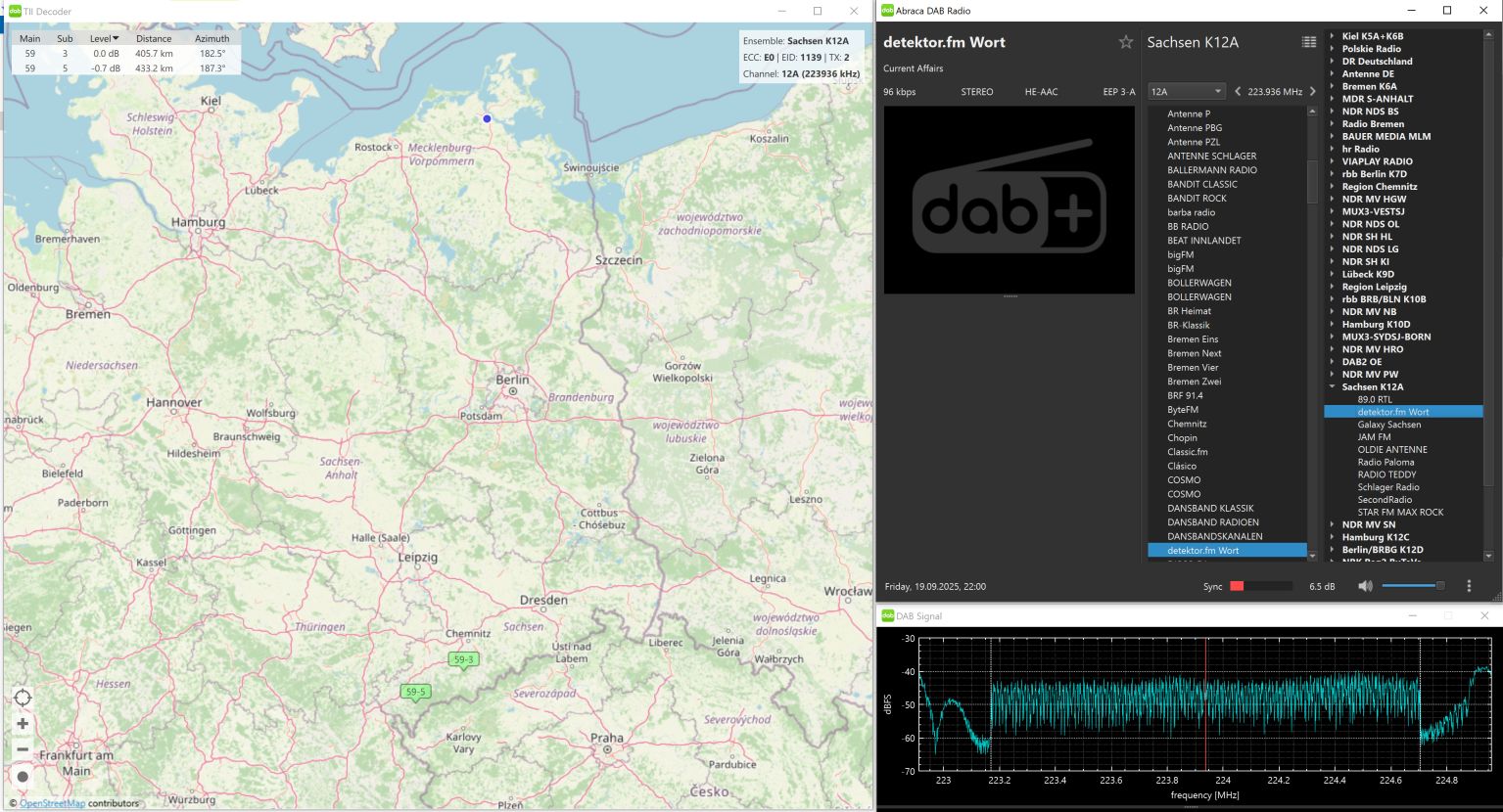 Auf 10D TELEKO DAB1 , TII 1007 mit ca. 380 km Entfernung.