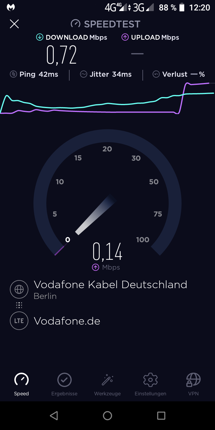 Vodafone hat aber wieder Speed an meiner Adresse :mrgreen: Sie haben mir 200MB Extra Datenvolumen geschenkt das kann man aber vergessen bei den Speed.