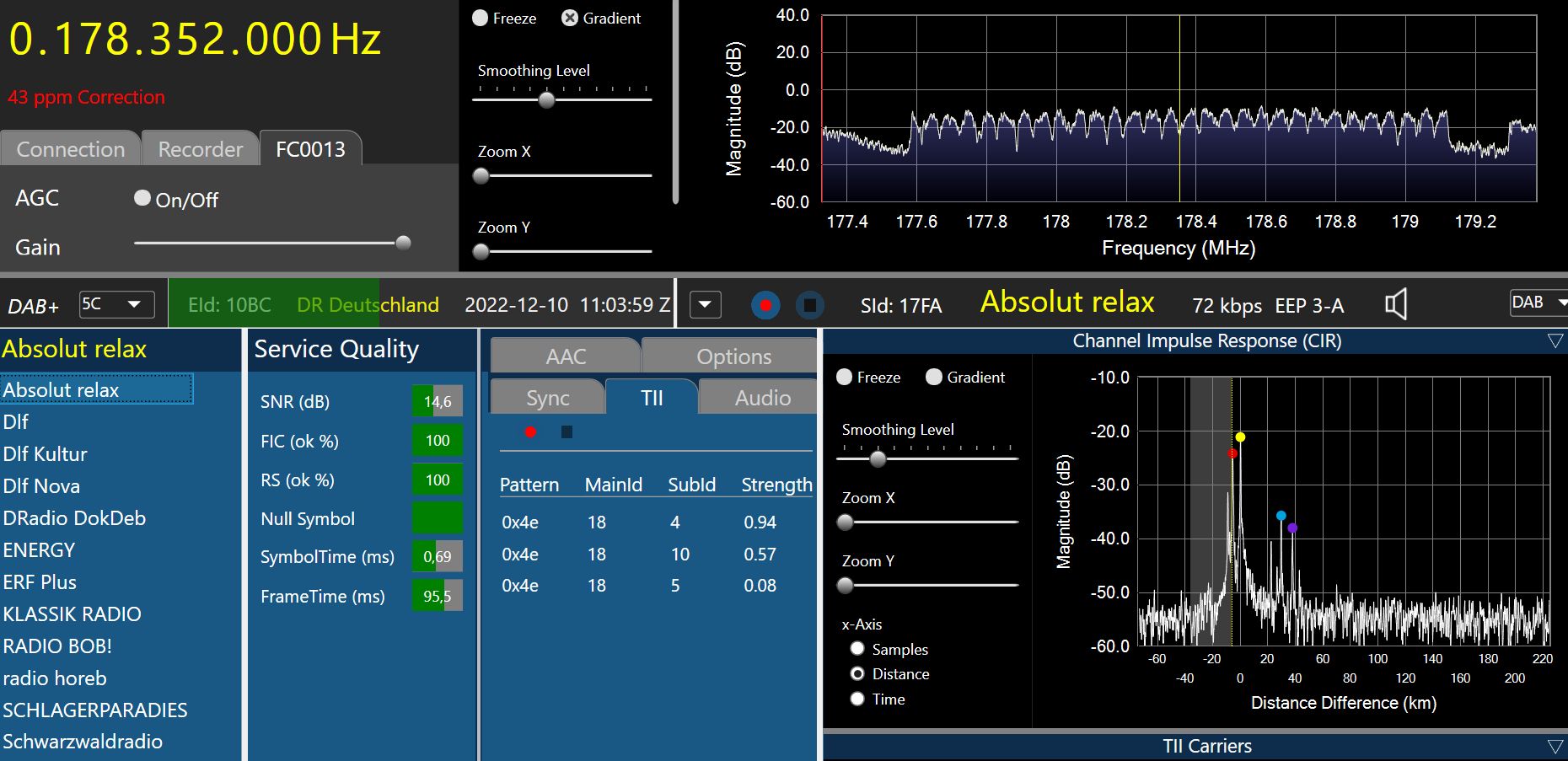 Ein aus Torgelow oder aus Züssow ist bei einen SFN (Einzelfrequenznetzwerk = DAB Kanal 5C) nicht möglich. Das ist dann eher eine Kombination aus mehreren Standorten, im Fall von Torgelow dann Torgelow, Züssow und Casekow.