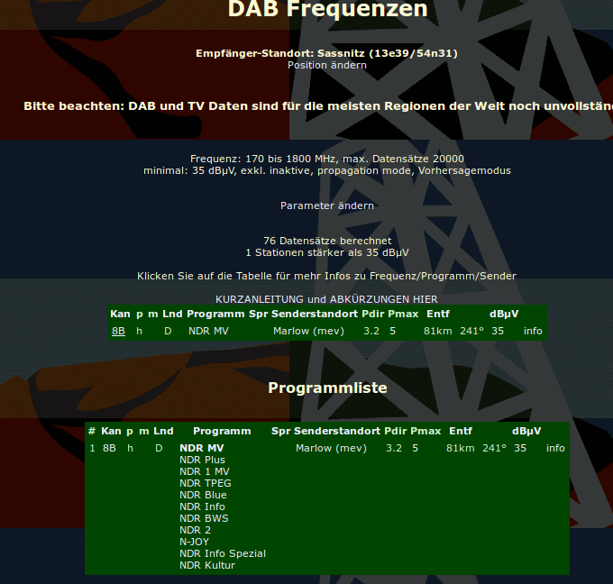 Ja, mit Aufwand kommt der hier an, und ja an prädestinierten Orten ist auch ohne Aufwand ein Empfang möglich. Das kann man aber nicht als Abdeckung bezeichnen. DAB ist und bleibt der Empfangsweg für den Mobilen Empfang und für Kofferradios. Und so betrachtet liegt die Abdeckung hier bei unter 5%. Also keine Abdeckung.