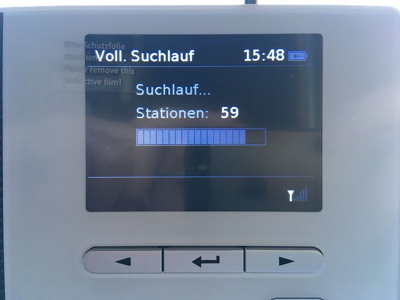 Schließt man das Radio an, so begrüßt es einen mit einer nicht gestellten Uhrzeit, aber keine Sorge, ihr müsst jetzt nicht aufwending anfangen zu programmieren, denn die Uhrzeit holt sich das Radio aus dem DAB+ Netz. Der Bundesmux und die üblichen BW Sender waren schon vorab im Radio eingestellt.
