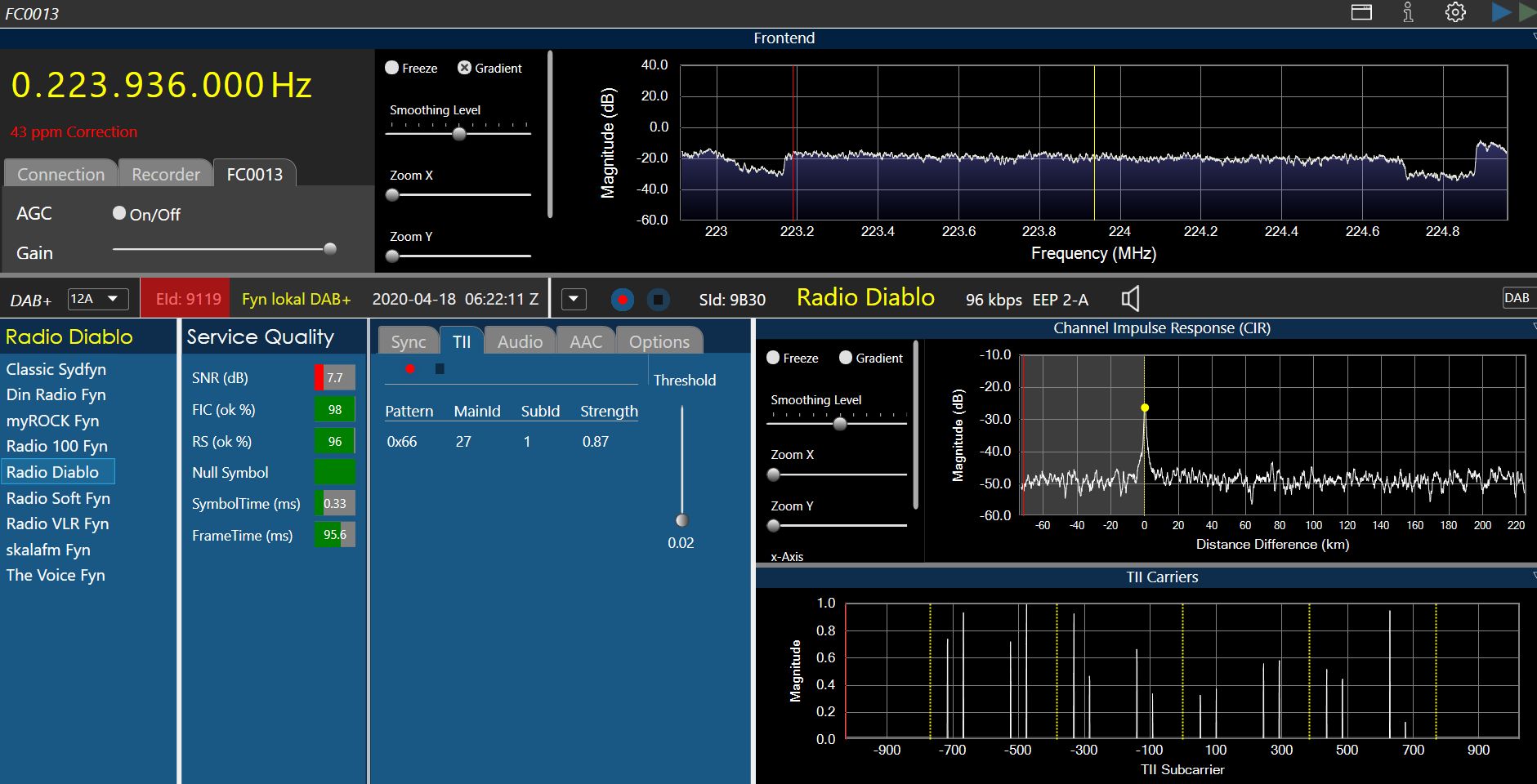 Fuer eine Schnitzeljagt kannst du vielleicht die Antenne am Radio komplett abschrauben. Dann duerfte nur Empfang sein, wenn du direkt neben einem Senderstandort stehst. Oder ein Spektrumnanalyser, womit ich den 12A Standort in Roenne auf Bornholm identifizieren konnte, der nur wenige km vom 11C Standort Roenne entfernt steht. Aber wer weiss, wann wir wieder nach DK duerfen...