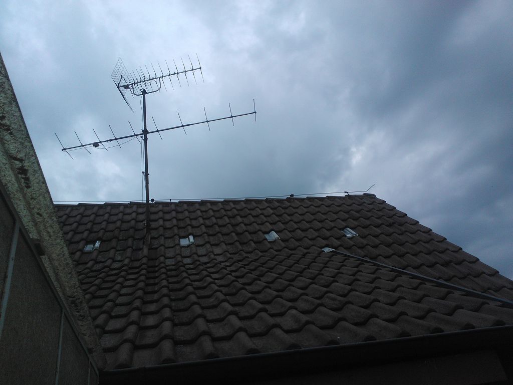 Die Antenne (übrigens von Hirschmann) habe ich bereits im Ur-Zustand aufs Dach montiert, da ich nicht wusste das die Antenne vor den Mast muss und damit sie nicht stört beim Umzug. Aber die VHF-Antenne sollte man ja wieder abmontieren können. Auf meinem neuen Haus war schon so eine Antenne und wurde vom Vorbesitzer kurz vor dem Verkauf abmontiert und verschrottet. Frag mich nicht warum. Daher war praktisch schon alles für die Antenne vorbereitet (auch die Antennenweiche und die ganzen Verkabelungen zu den Antennenbuchsen in den Zimmern für die ehemalige Antenne sind noch dran). Ich mache morgen mal ein Bild wie das ganze aussieht.