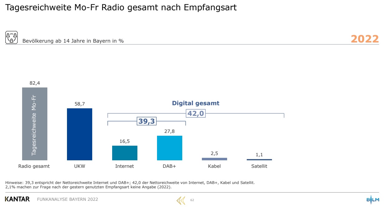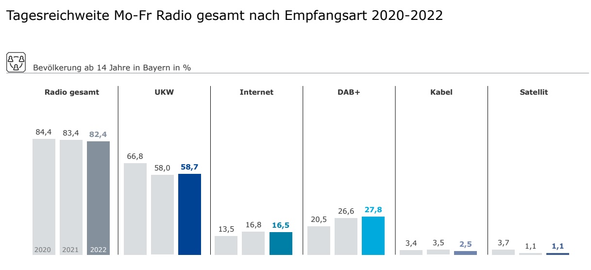 hört doch gar kein Radio über Astra. das ist eine absolute Nische. über diesen Verbreitungsweg wird noch weniger Radio gehört als über DVB-C / VF-Kabel. nur über DVB-T2 hören noch weniger Menschen Radio. das geht aus den Audio Trends hervor. wobei DVBT-2 in Bayern m.W. nicht für Radio genutzt wird, nur in Berlin und Norddt.land