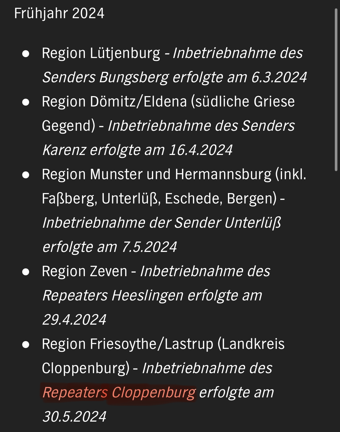 Meine Vermutung war korrekt, auch Molbergen ist ein Repeater-Standort.
