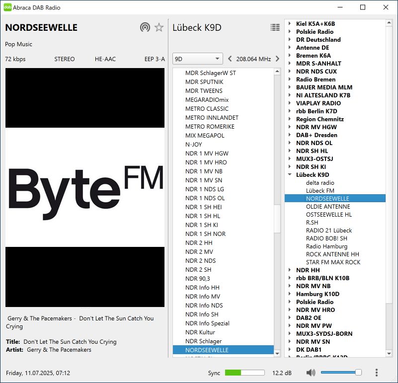 Ca. 2 Wochen lang war anstelle von Nordseewelle das Programm von Byte FM aufgeschaltet. Mit Slideshow und DLS+. Nur der Programmname war noch die Nordseewelle.